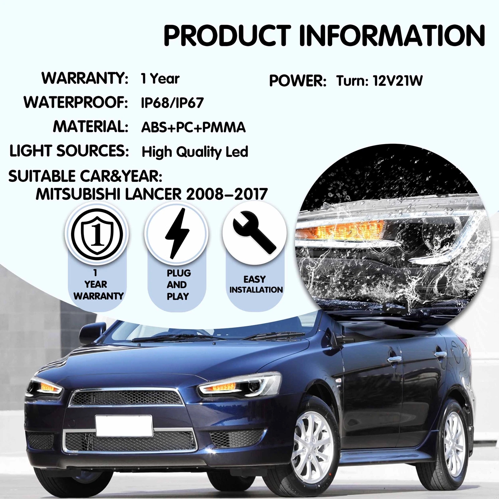 Fit for 08-17 Mitsubishi Lancer 9th Gen Evo X GSR 10th Gen (CZ4A) With Stock Halogen Headlight.