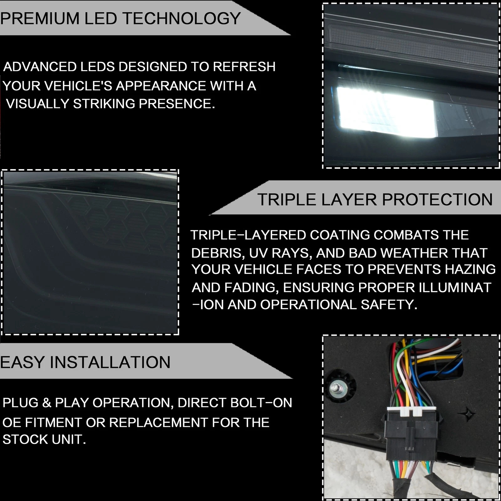 Description:The package includes: 1 pair of tail lamps with left side & right side.This item has the same connections and wires with the original taillight assembly. It is easy to installing (Professional installation recommended).